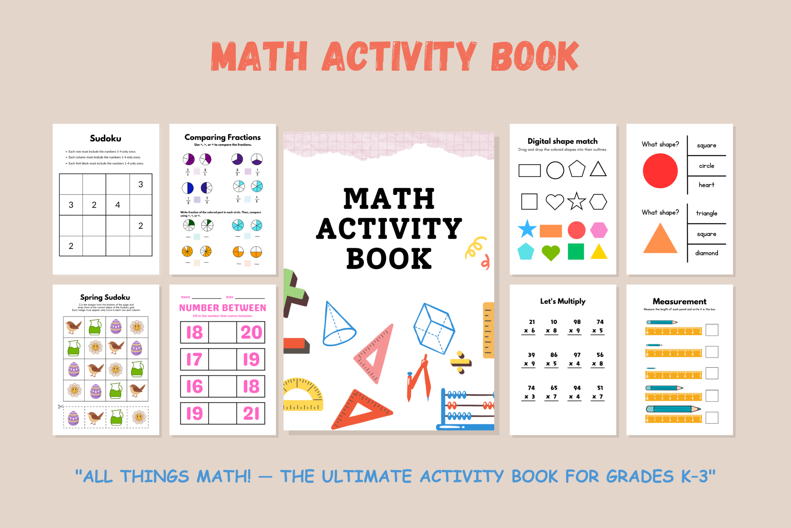 Introducing “All Things Math!” — the most comprehensive, standards-aligned, and visually engaging math activity book on the market for early elementary learners! With an incredible 66 pages spanning skills from basic number tracing all the way through multiplication drills, fraction comparisons, sudoku puzzles, measurement, and shape identification, this book truly does it all.