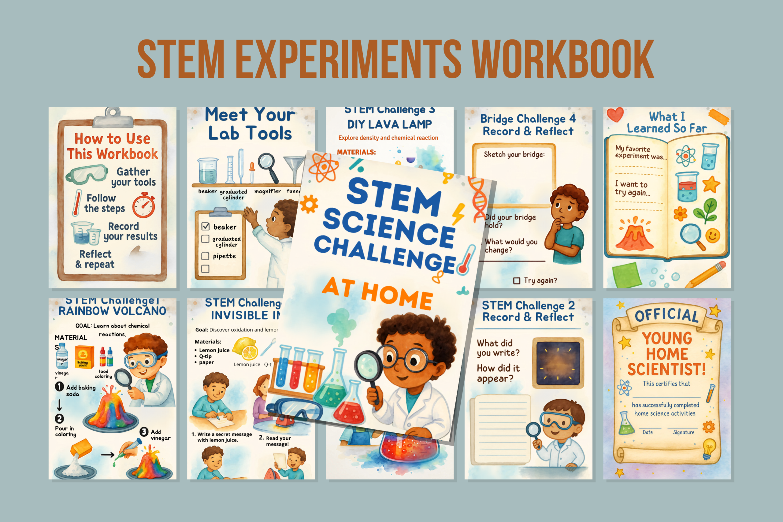 The Home Lab Heroes: STEM Science Challenges Workbook is designed to transform everyday moments into powerful learning experiences. Instead of passive worksheets, students actively experiment, observe, record, and reflect—just like real scientists.