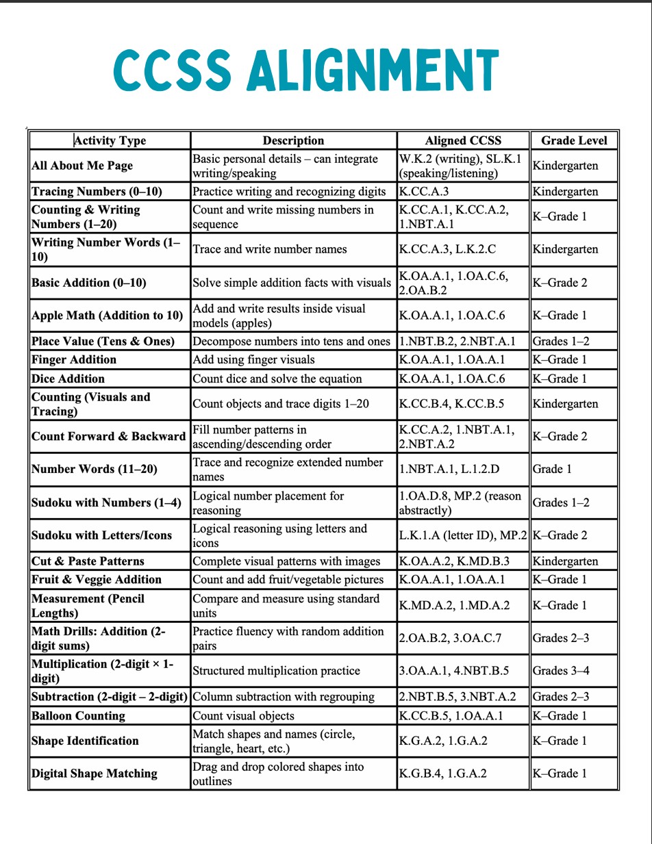 Fun & Interactive Early Math Practice for Young Learners. Build strong number sense and early math confidence with this engaging Math Activity Numbers Workbook. Designed for young learners, this printable resource combines tracing, counting, visual addition, place value, number sequencing, shapes, measurement, and logic puzzles in a fun, hands-on format. With 80+ activity pages, students develop foundational math skills through visuals, games, and problem-solving tasks that support classroom learning, math centers, homework, and homeschooling.