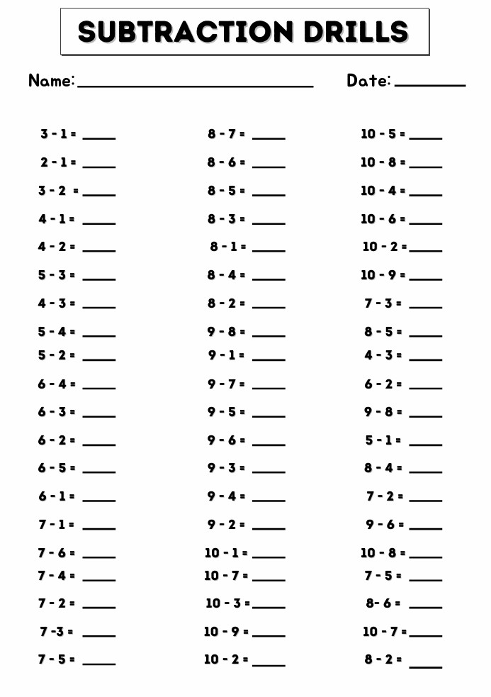 - Subtraction skills