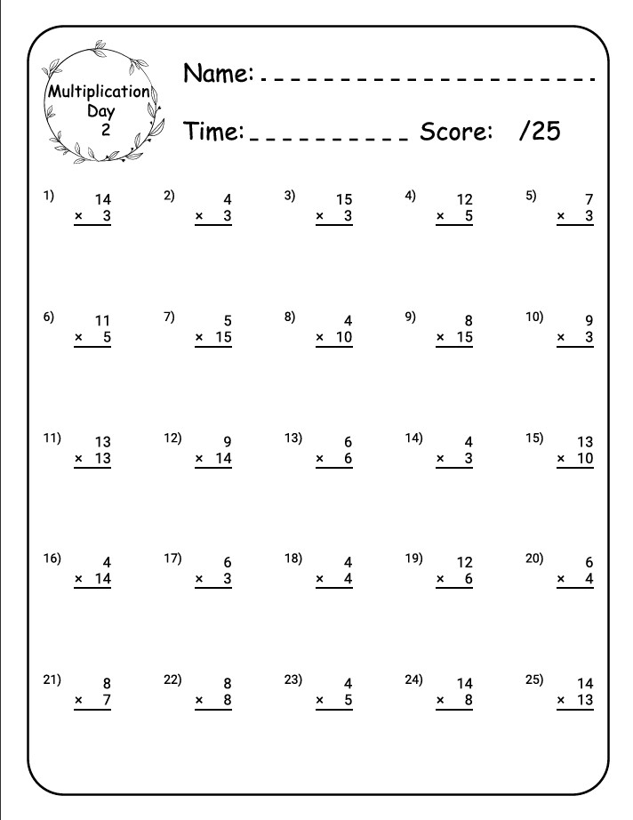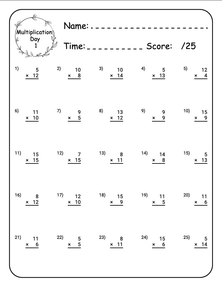 ✔️ 18 structured daily multiplication worksheets