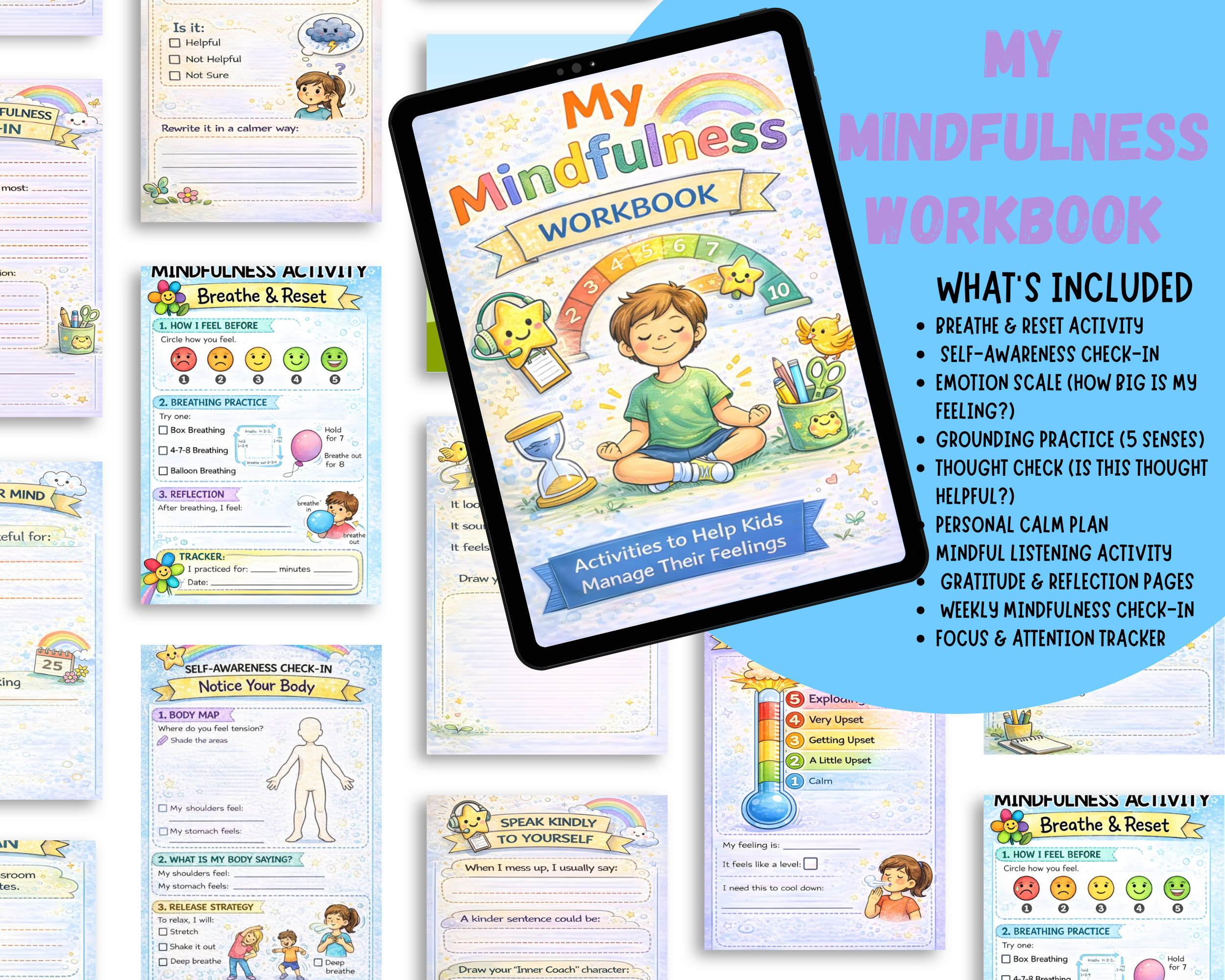 My Mindfulness Workbook for Kids is a beautifully designed, child-friendly resource that supports emotional regulation, self-awareness, and calm thinking through interactive activities.