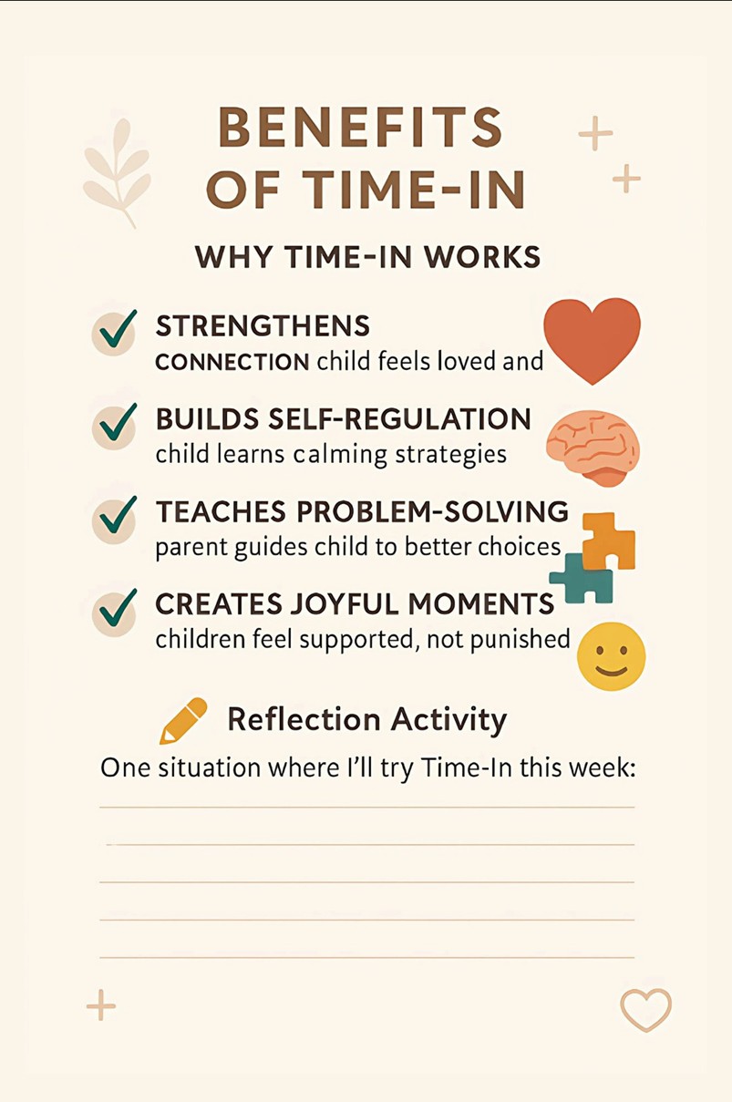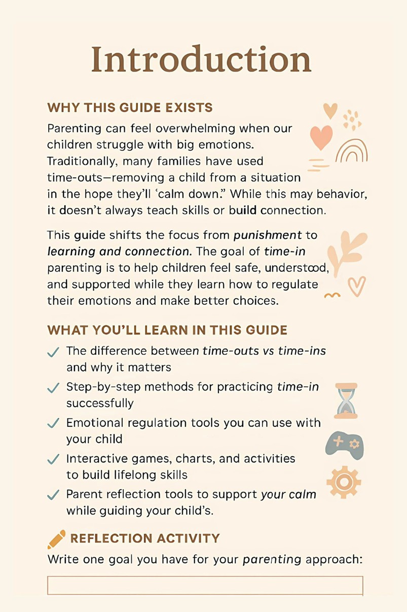Positive Parenting Guide: Time-In Strategies & Emotional Regulation Tools is a practical, heart-centered resource designed to help parents raise calm, confident, and emotionally healthy children. Instead of traditional time-outs, this guide teaches the powerful “time-in” approach—building connection first, then guiding behavior with empathy and skills.